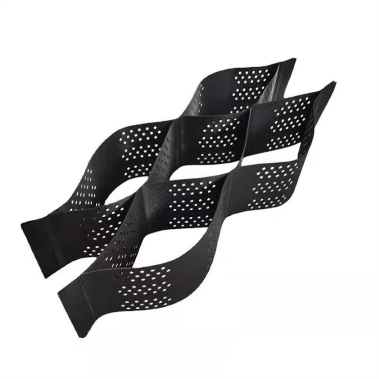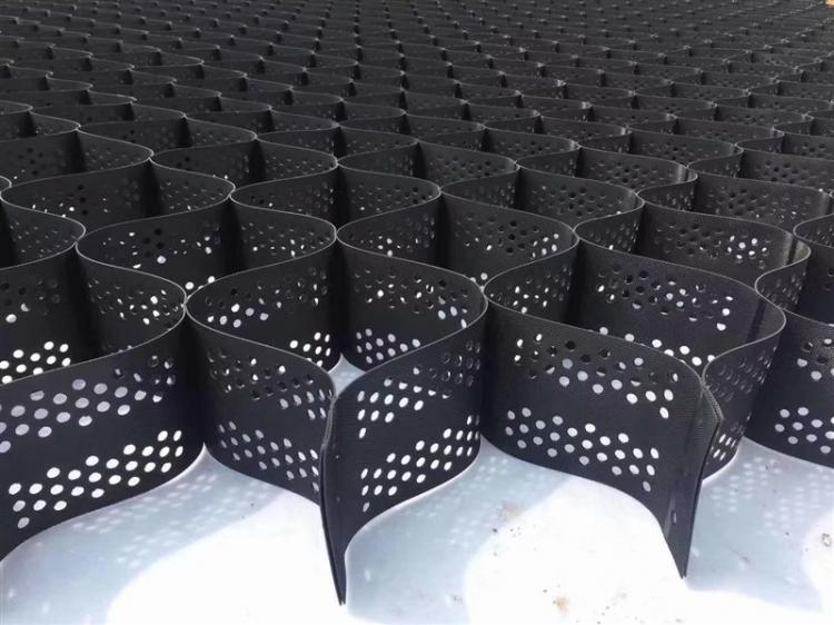土工格室是由強化的HDPE片材料,經(jīng)高強力焊接而形成的一種三維網(wǎng)狀格室結構。一般經(jīng)超聲波針式焊接而成。因工程需要,有的在膜片上進行打孔